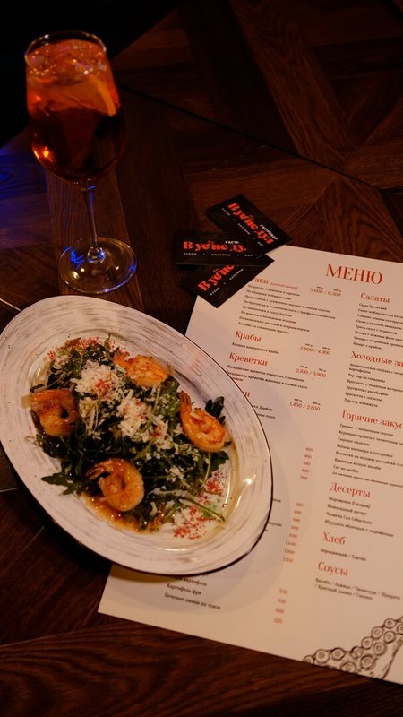 Гостеприимство, вкусная кухня, красивая и уютная веранда наверху, европейский стиль – всем довольна! Мне и креветки понравились "васаби, и салат с крабом. Официант Артем – очень приятный молодой человек, очень услужливый, внимательный.